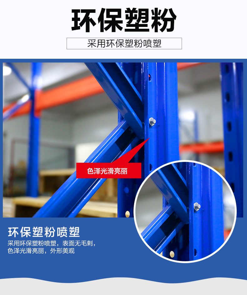 產(chǎn)品描述:廣泛適用于制造業(yè)、第三方物流和配送中心等領(lǐng)域,既適用于多品種小批量物品,又適用于少品種大批量物品。此外,為提高空間利用率,可將通道寬度縮小,配合特殊推高機循軌道行使,使儲存空間垂直化,即成為窄巷式料架。